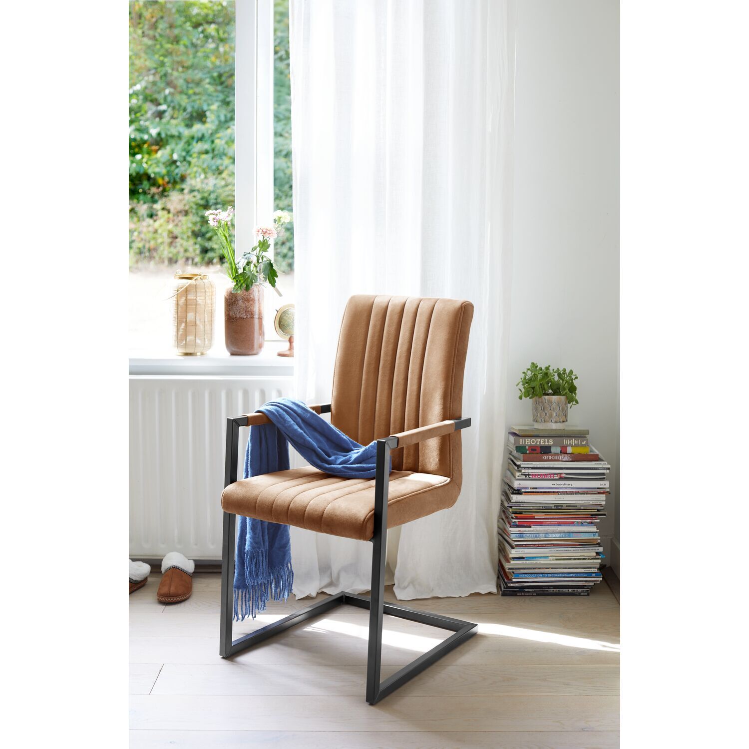 Eetkamerstoel met armleuning Pareda cognac is in al onze winkels te bekijken.