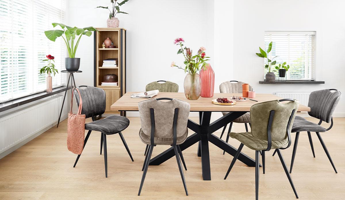 Eetkamerstoelen kies je al snel in dezelfde stijl. Maar heb je ook gedacht aan de mogelijkheid om hierin te variëren? Bijvoorbeeld door bij de eettafel allemaal verschillende stoelen uit te zoeken. Verschillende stoelen in dezelfde kleur bijvoorbeeld, of verschillende kleuren van hetzelfde type stoel. Of zelfs variëren met verschillende kleuren en type stoelen. Mixen en matchen dus, hartstikke trendy!