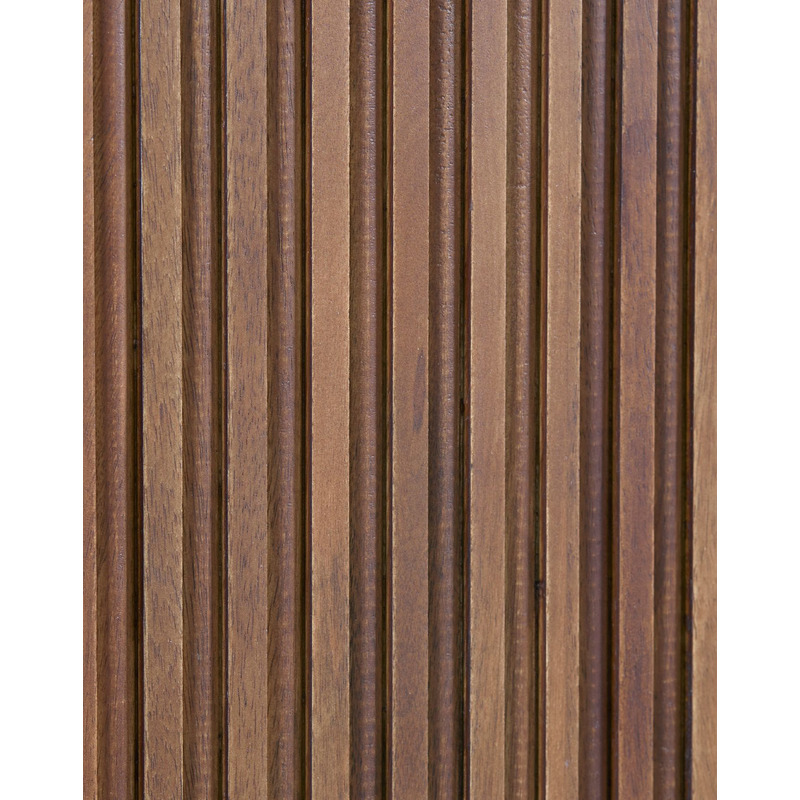 Maverna is een trendy woonprogramma, gemaakt van duurzaam mangohout. Het hout is afgewerkt met een chique bruine lak. Daarnaast geeft de combinatie met zwart metaal een moderne look aan de meubels. Dressoir Maverna is voorzien van trendy lamellen bij de deuren en laden.
