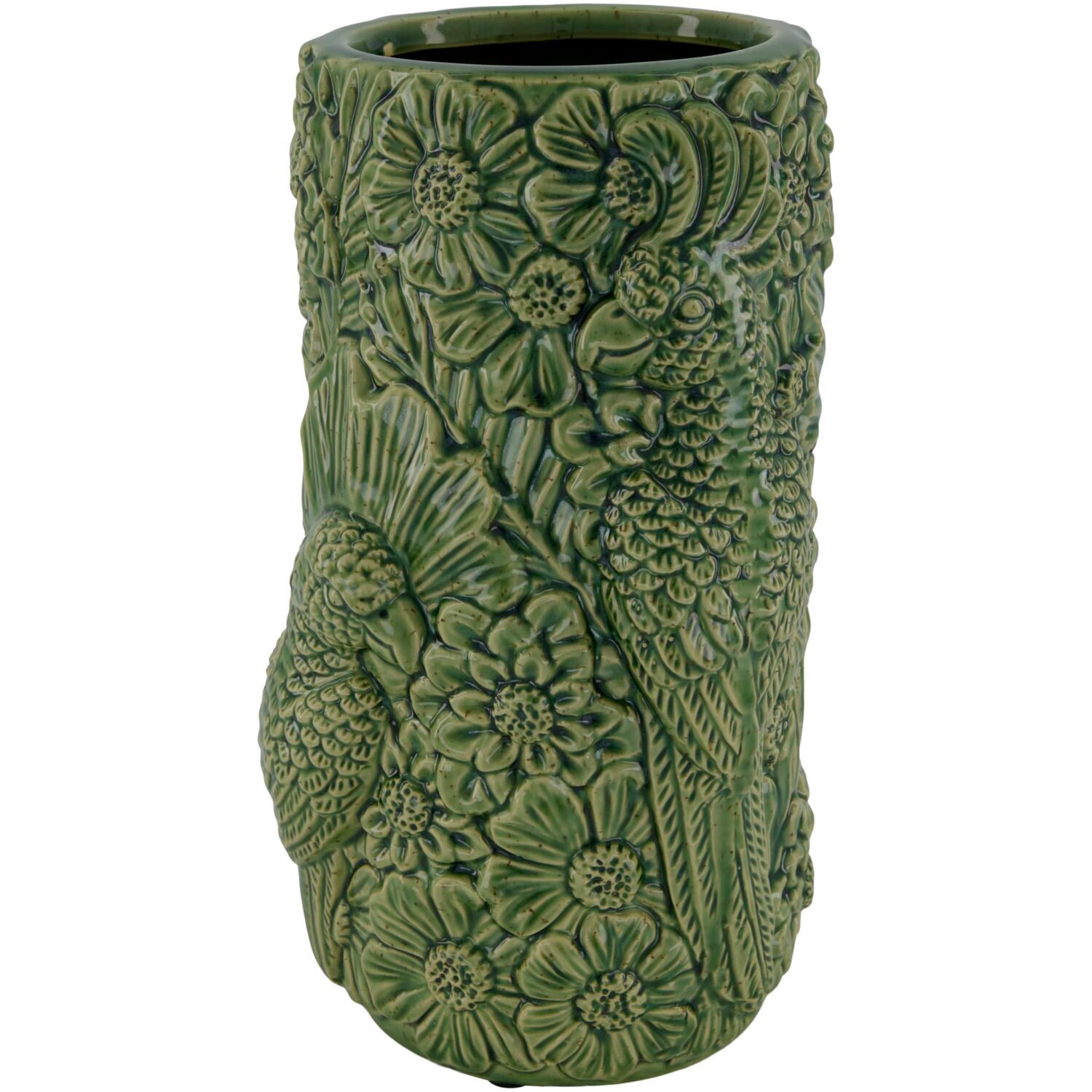 Vaas Badula met vogels donkergroen is alleen bij de winkels met voorraad te reserveren en te bekijken.